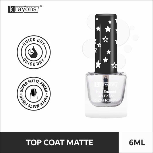 Krayons Cute Super Matte Finish Nail Enamel, Quick Dry, Smooth Finish, LongLasting, Top Coat, 6ml