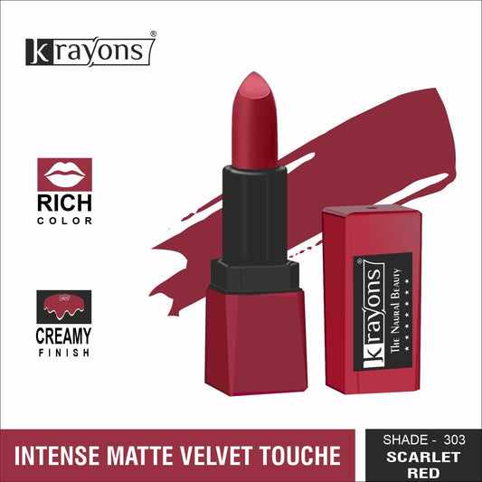 Krayons Intense Matte Lipstick, Creamy Finish, Waterproof, Longlasting, 3.5gm (Scarlet Red)