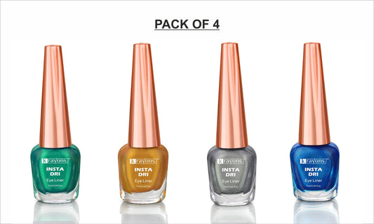Krayons Insta Dri Sparkling Eyeliner, Waterproof, Longlasting, Golden, Green, Brown, Blue, 7ml Each, Combo (Pack of 4)