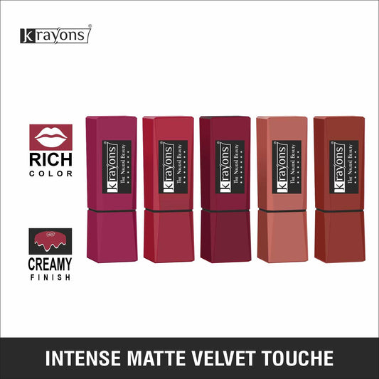 Krayons Intense Matte Lipstick, Waterproof, Longlasting, Multicolor, 3.5gm Each (Pack of 5)