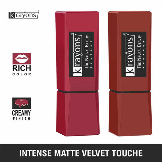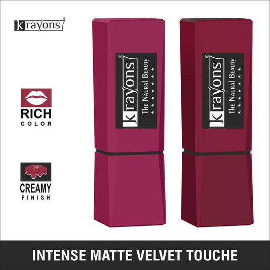 Krayons Intense Matte Lipstick, Waterproof, Longlasting, Rose Red, Cherry Maroon, 3.5gm Each (Pack of 2)