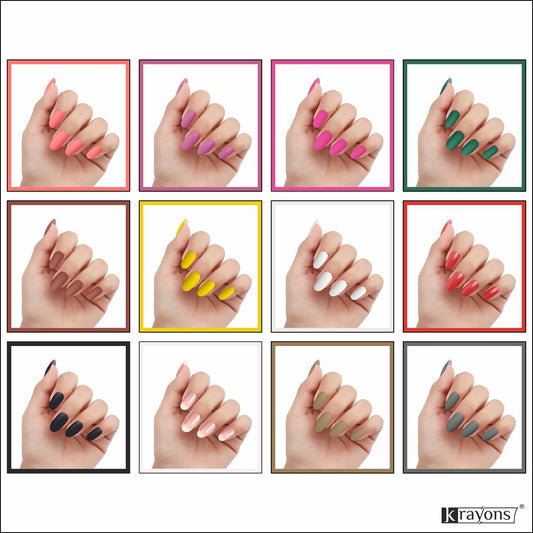 Krayons Cute Super Matte Finish Nail Enamel, Quick Dry, LongLasting, Multicolor, 6ml Each (Pack of 12)