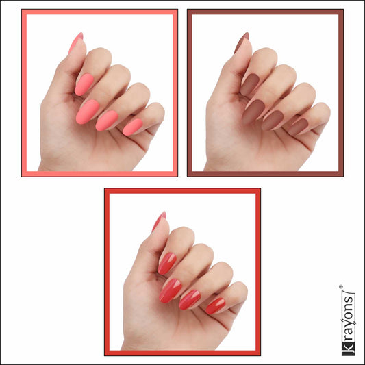 Krayons Cute Super Matte Finish Nail Enamel, Quick Dry, LongLasting, Blossom Peach, Chestnut Matte, Ruby Red, 6ml Each (Pack of 3)