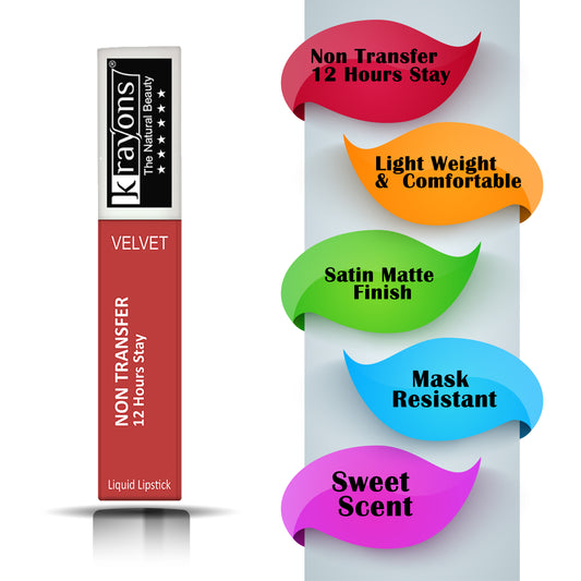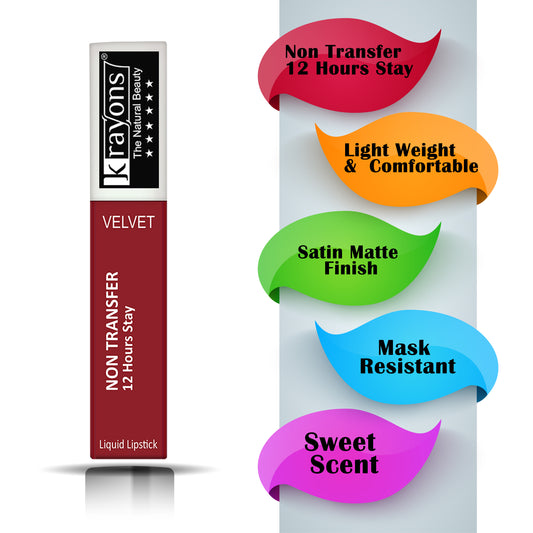Krayons Power Stay Nontransfer 12hrs Stay Matte Liquid Lipstick,4ml