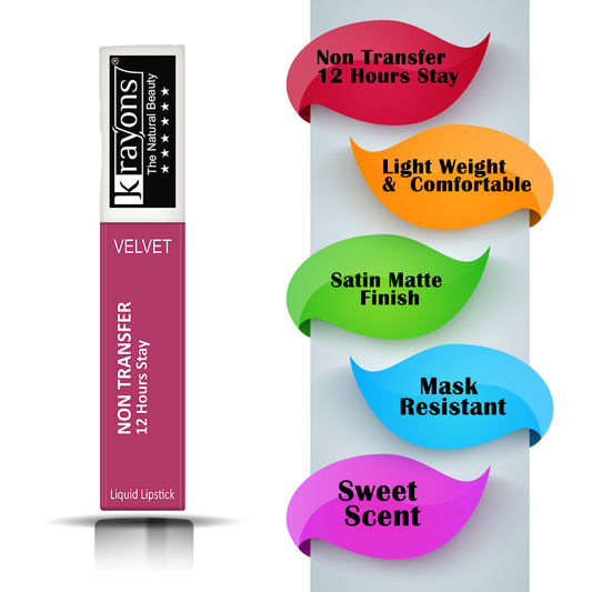 Krayons Power Stay Nontransfer 12hrs Stay Matte Liquid Lipstick, Pink Glam, Mask Proof, Smudgeproof, Longlasting, 4ml