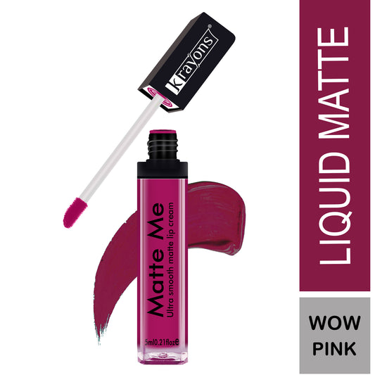 Krayons Matte Me Ultra Smooth Matte Liquid Lip Color, Mask Proof, Waterproof, Longlasting, 5ml (Wow Pink)