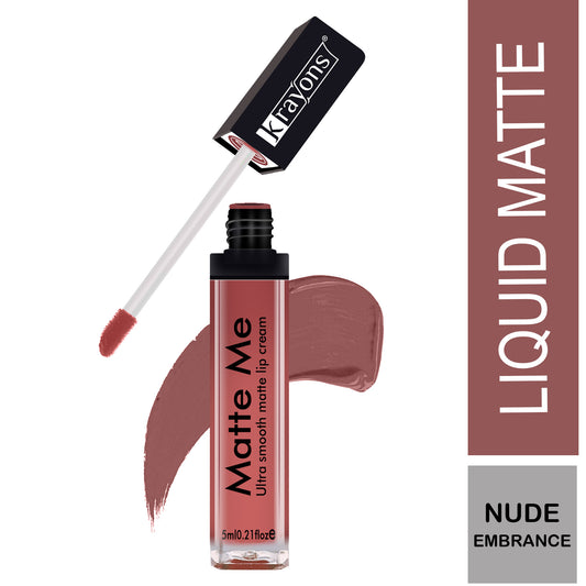 Krayons Matte Me Ultra Smooth Matte Liquid Lip Color, Mask Proof, Waterproof, Longlasting, 5ml (Nude Embrace)