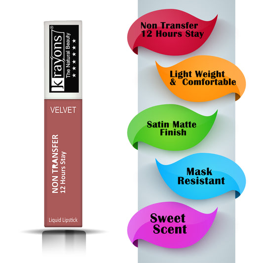 Krayons Power Stay Nontransfer 12hrs Stay Matte Liquid Lipstick, Caramel, Mask Proof, Smudgeproof, Longlasting, 4ml