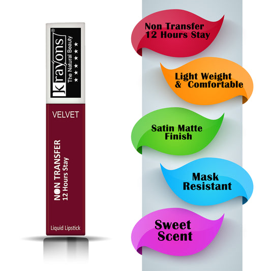 Krayons Power Stay Nontransfer 12hrs Stay Matte Liquid Lipstick, Maroon Magic, Mask Proof, Smudgeproof, Longlasting, 4ml