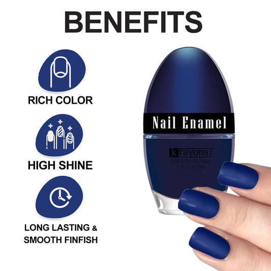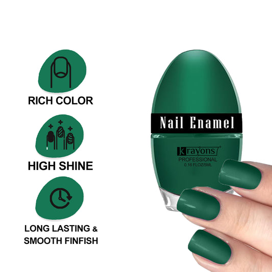 Krayons Professional Glossy Nail Paint, 5ml Each, Pack of 4 (Dark Green, Blue Ink, Black Shadow, Lemon Yellow)
