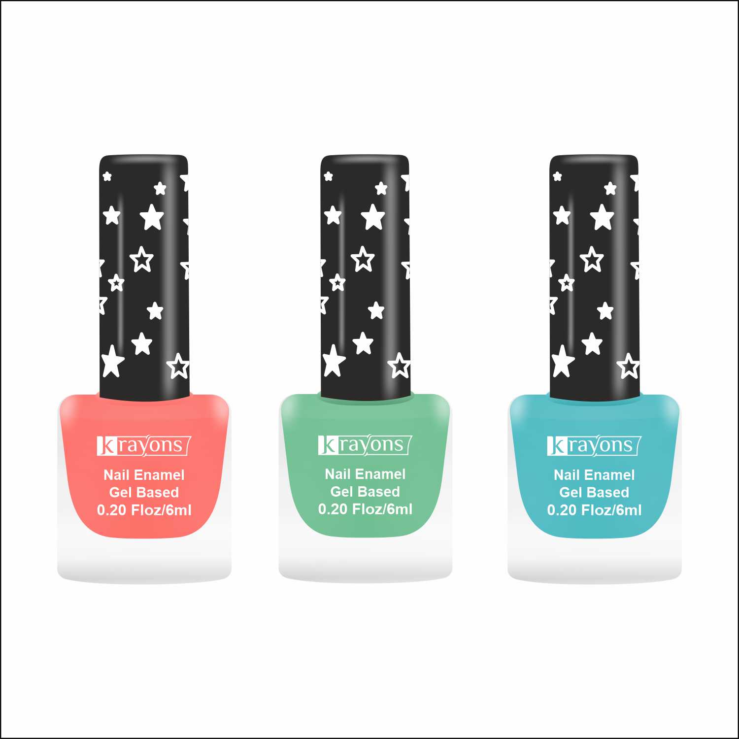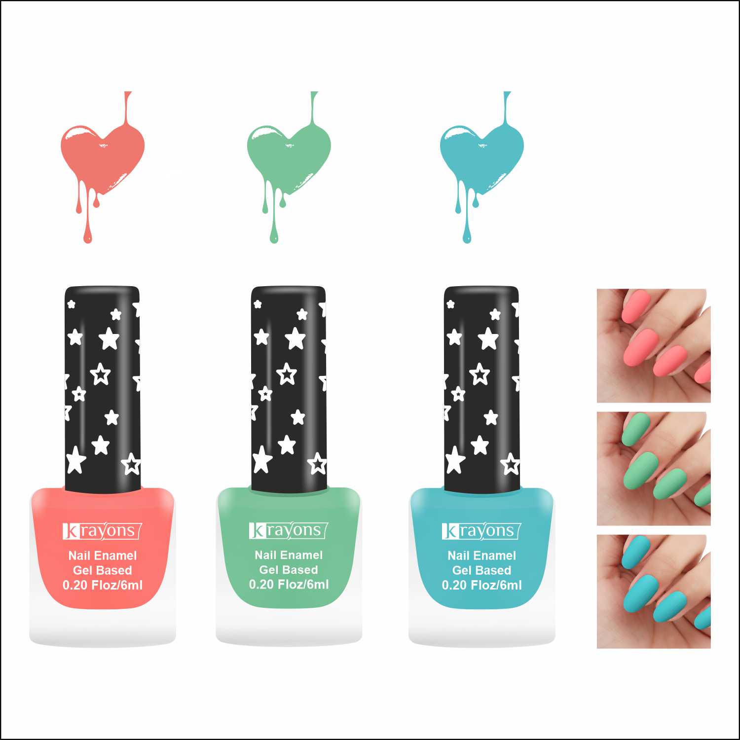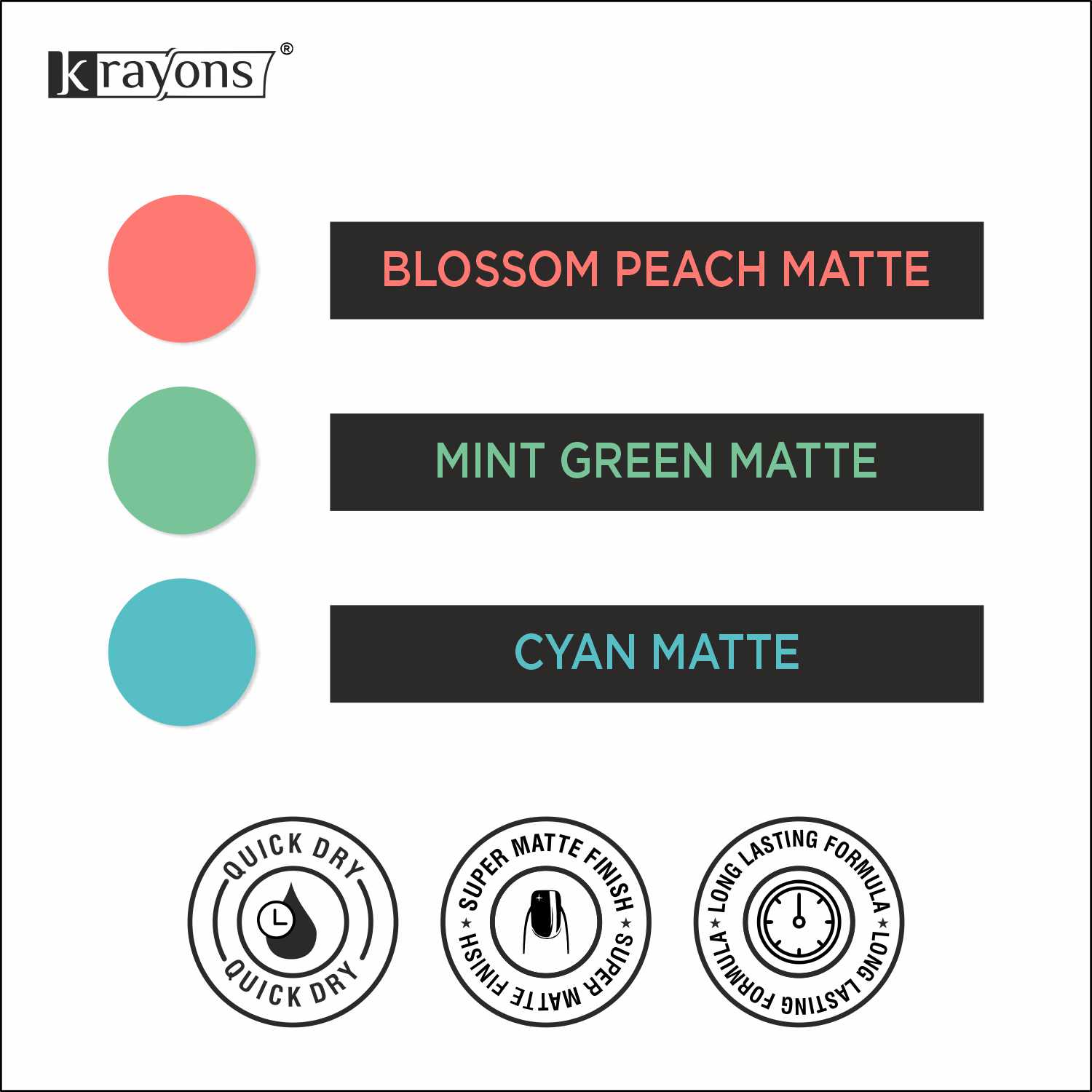Krayons Cute Super Matte Finish Nail Enamel, Quick Dry, LongLasting, Blossom Peach, Mint Green, Cyan Matte, 6ml Each (Pack of 3)