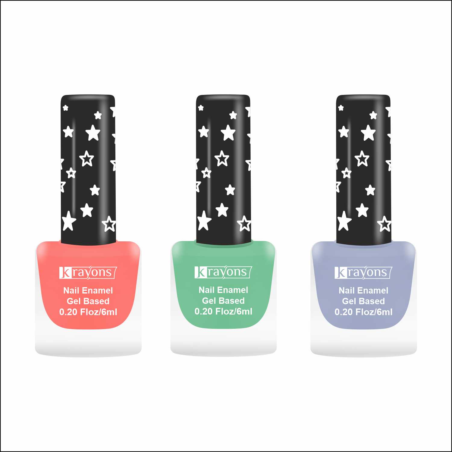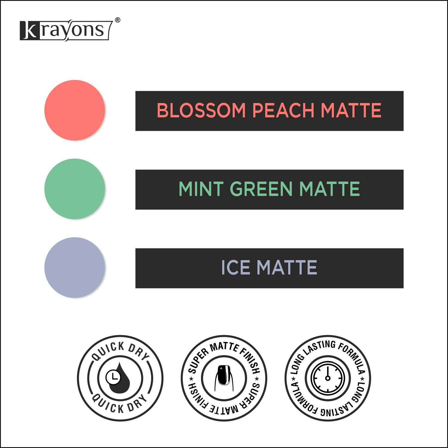 Krayons Cute Super Matte Finish Nail Enamel, Quick Dry, LongLasting, Blossom Peach, Mint Green, Ice Matte, 6ml Each (Pack of 3)