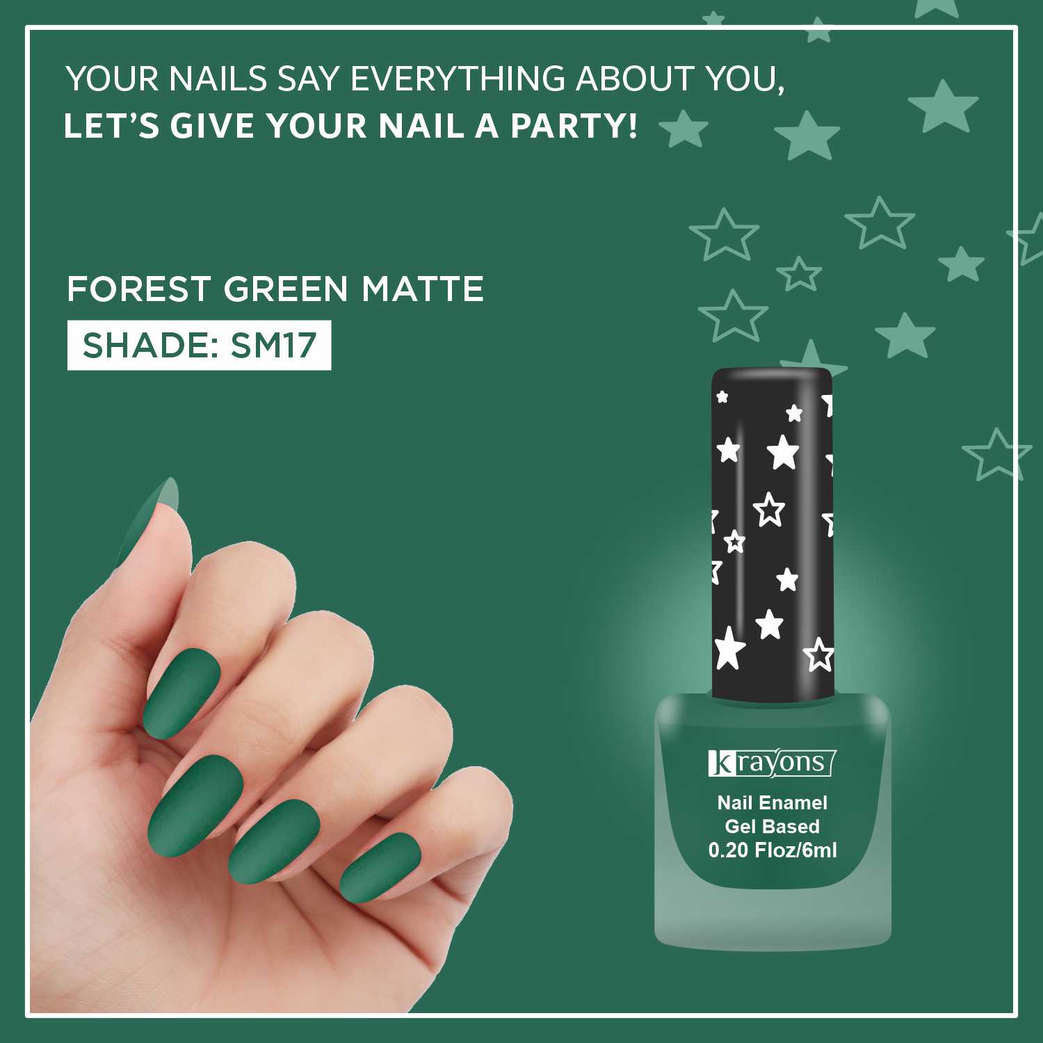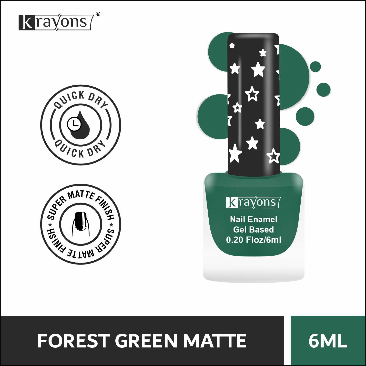 Krayons Cute Super Matte Finish Nail Enamel, Quick Dry, Smooth Finish, LongLasting, Forest Green, 6ml
