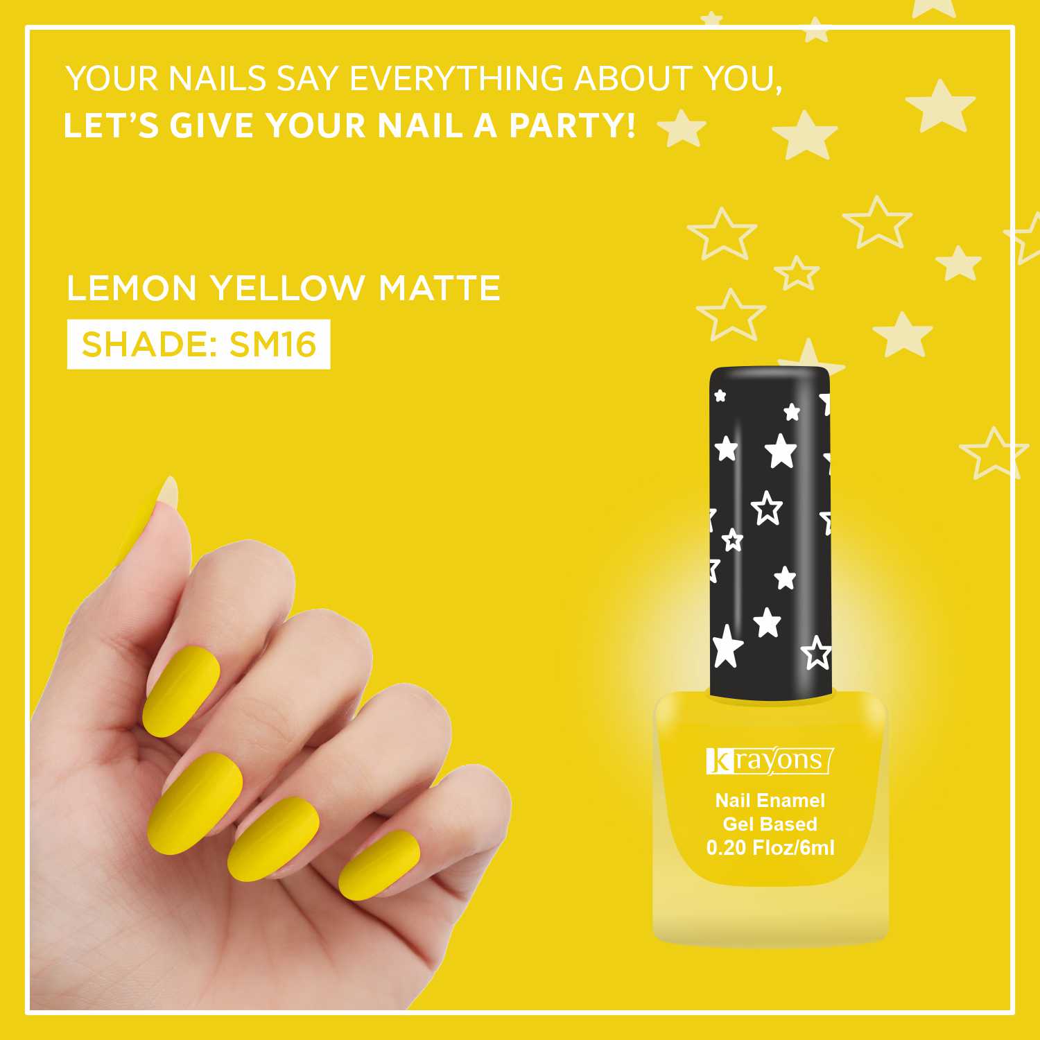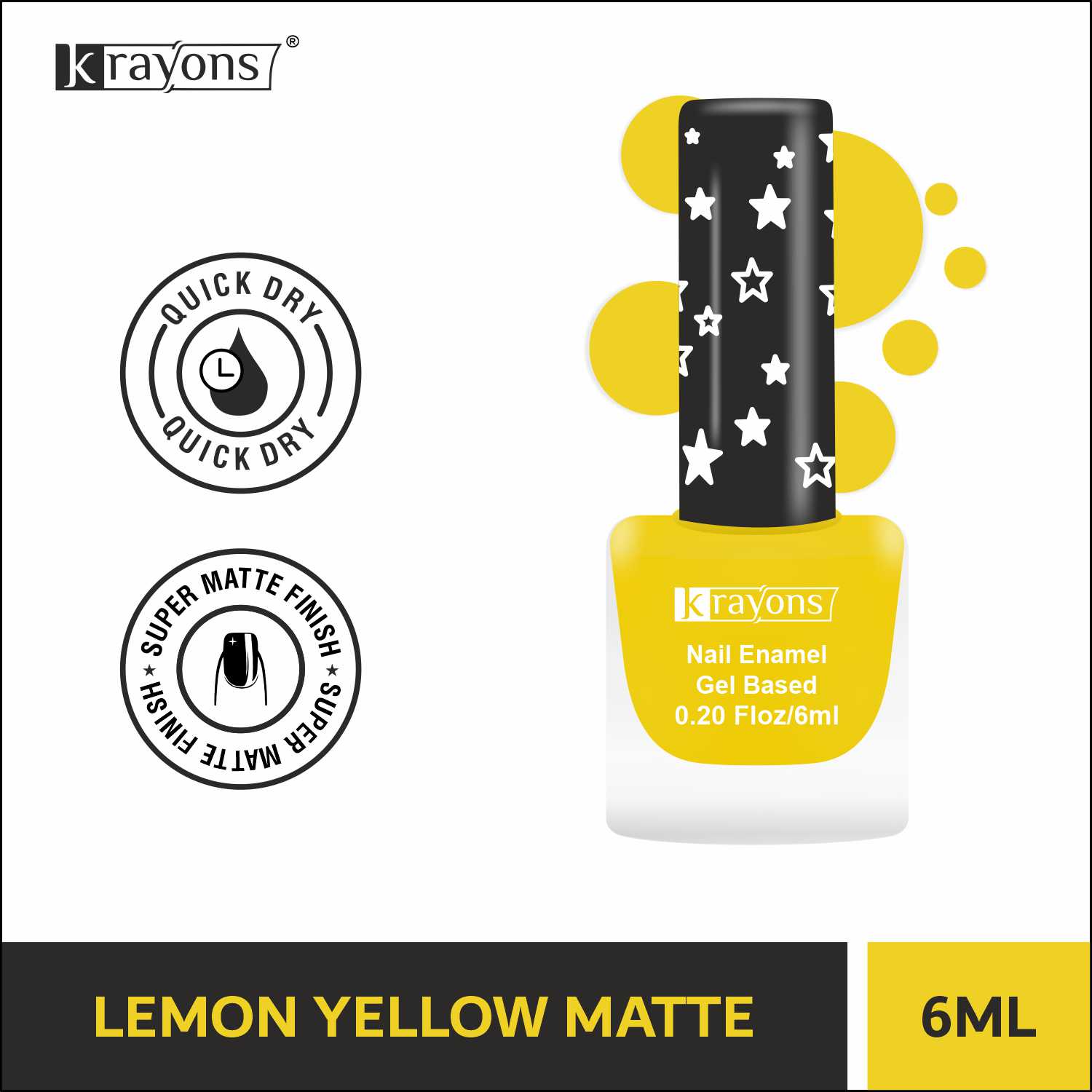 Krayons Cute Super Matte Finish Nail Enamel, Quick Dry, Smooth Finish, LongLasting, Lemon Yellow, 6ml