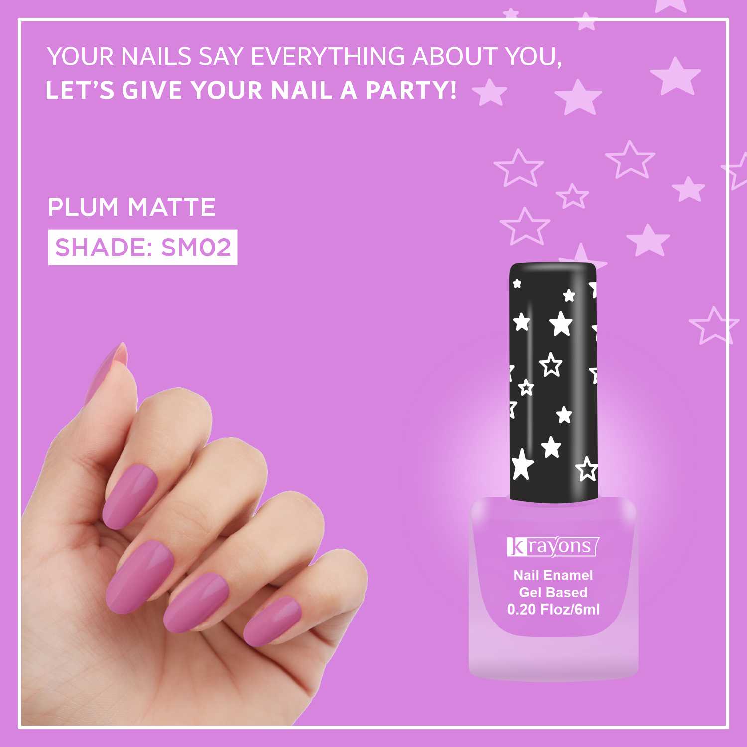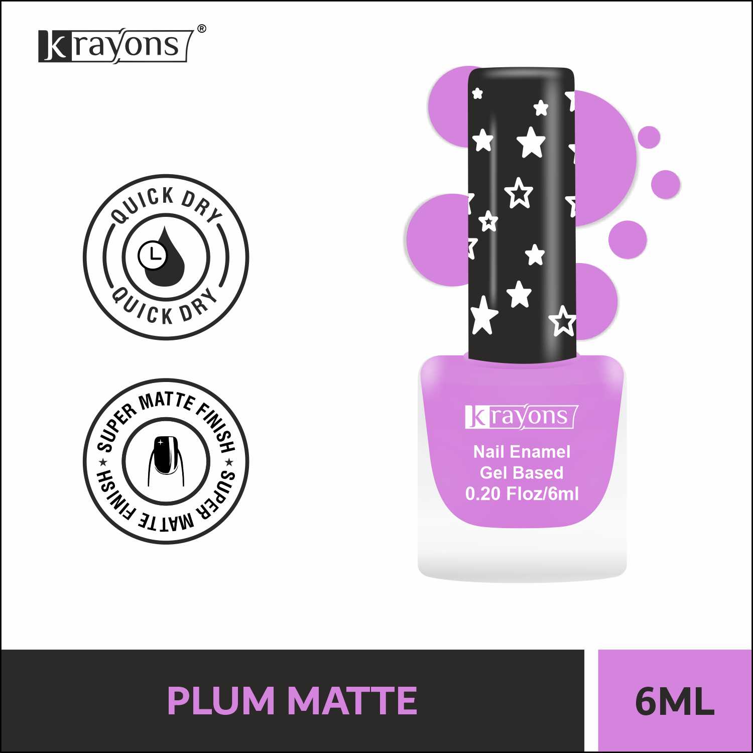 Krayons Cute Super Matte Finish Nail Enamel, Quick Dry, Smooth Finish, LongLasting, Plum Matte, 6ml