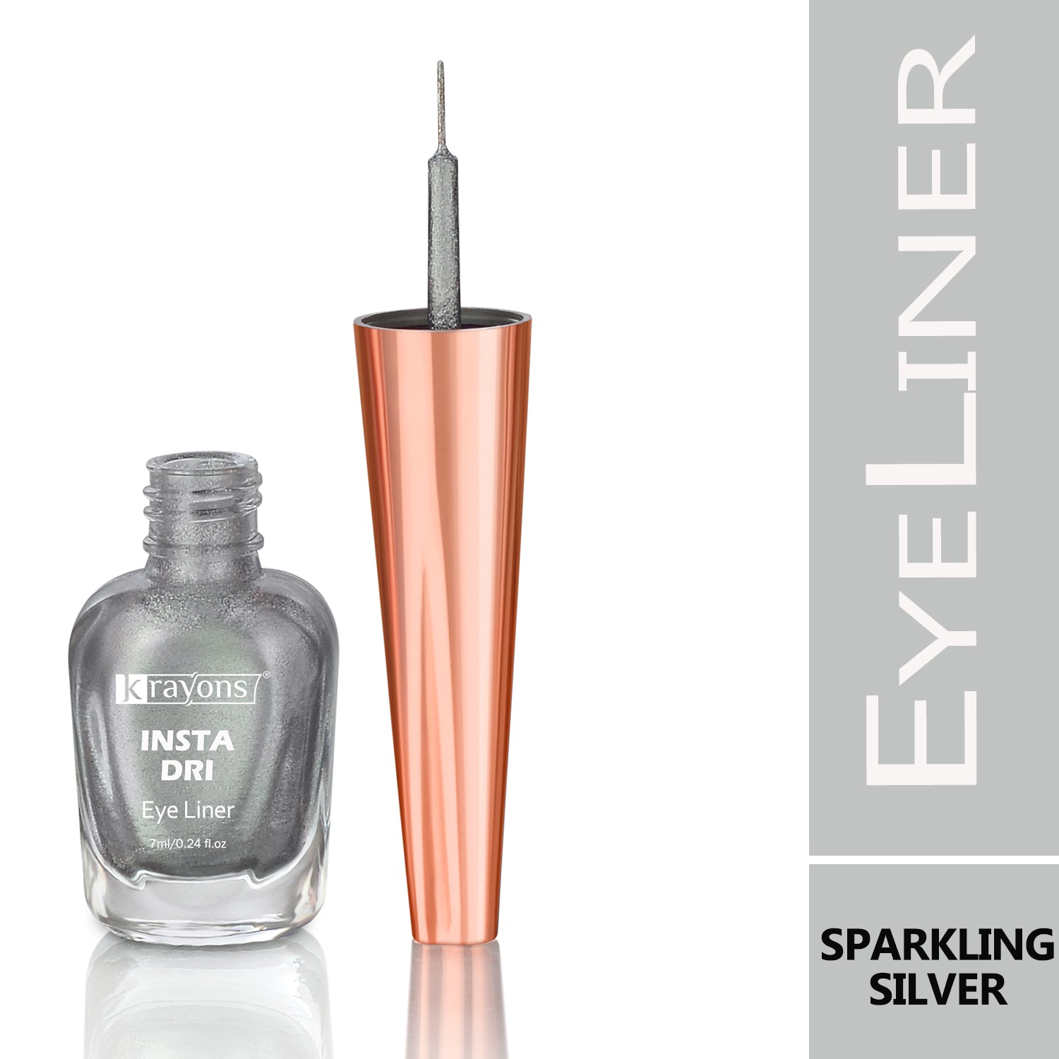 Krayons Insta Dri Sparkling Eyeliner, Silver, Brown, Waterproof, Longlasting, 7ml Each, Combo (Pack of 2)