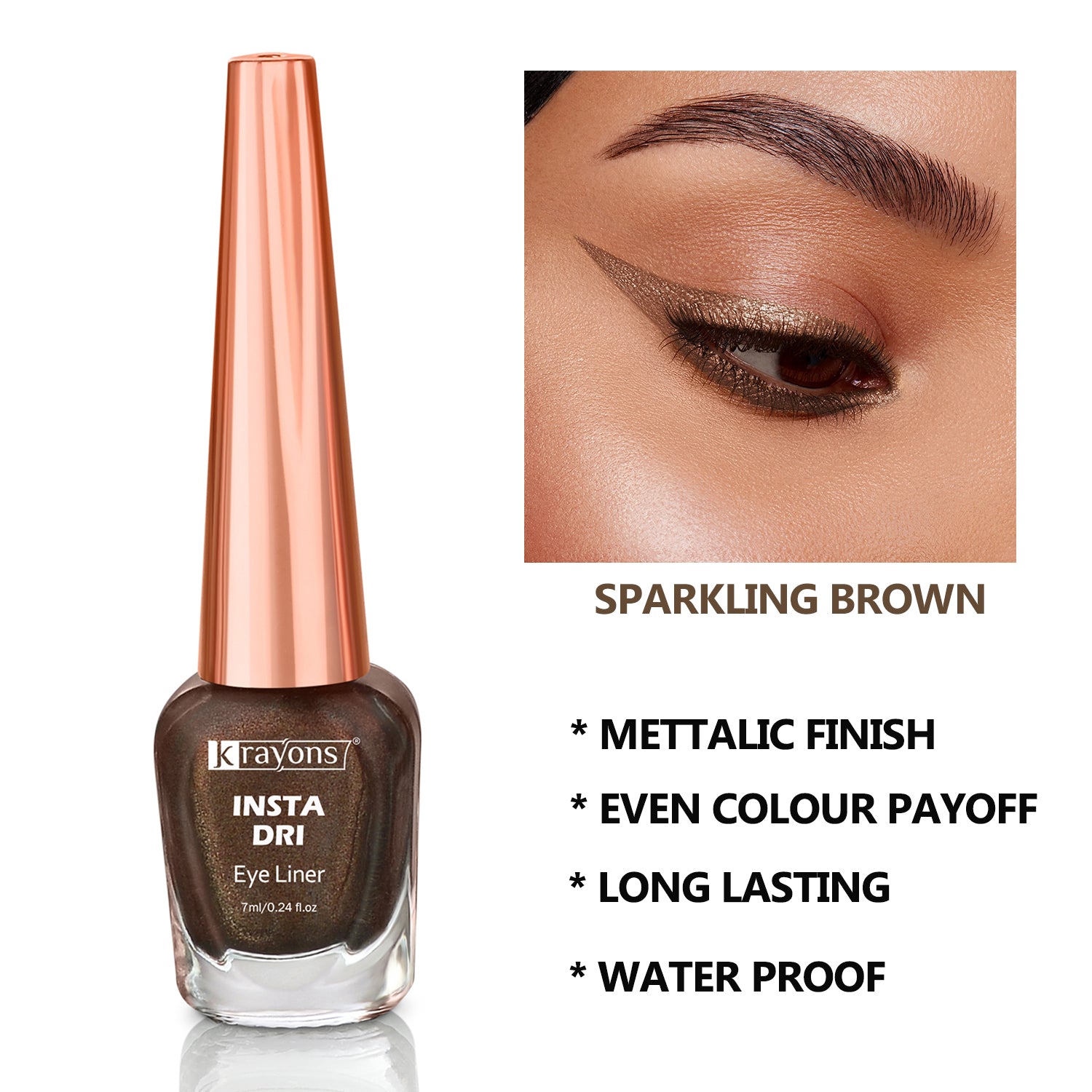 Krayons Insta Dri Sparkling Eyeliner, Waterproof, Longlasting, Brown, 7ml